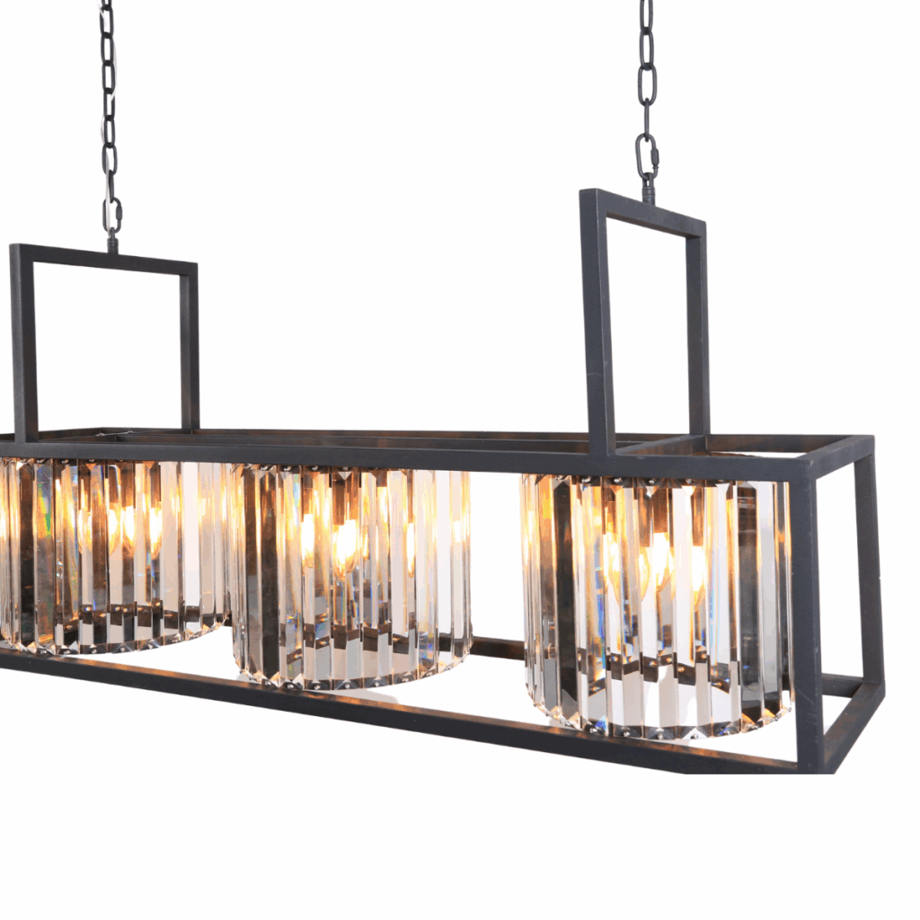 Mazar eettafellamp | 9 eettafellamp | Zwarte frame | Kristal
